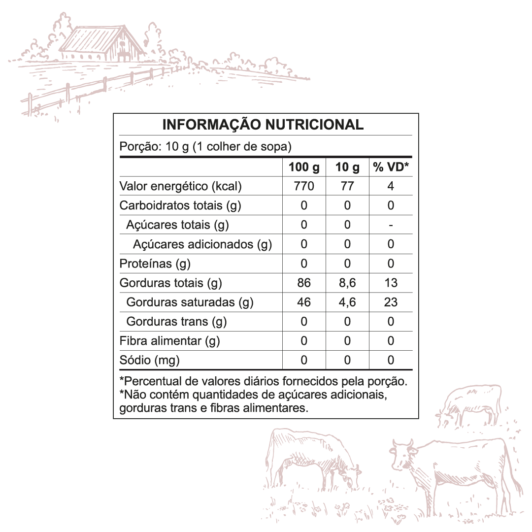 É a partir dos processos de bateção e malaxagem do creme de leite pasteurizado que nós produzimos a nossa manteiga comum sem sal. Características como textura lisa e sabor inconfundível fazem parte do resultado final, além de uma consistência sólida ou pastosa, a depender da temperatura a qual exposta.